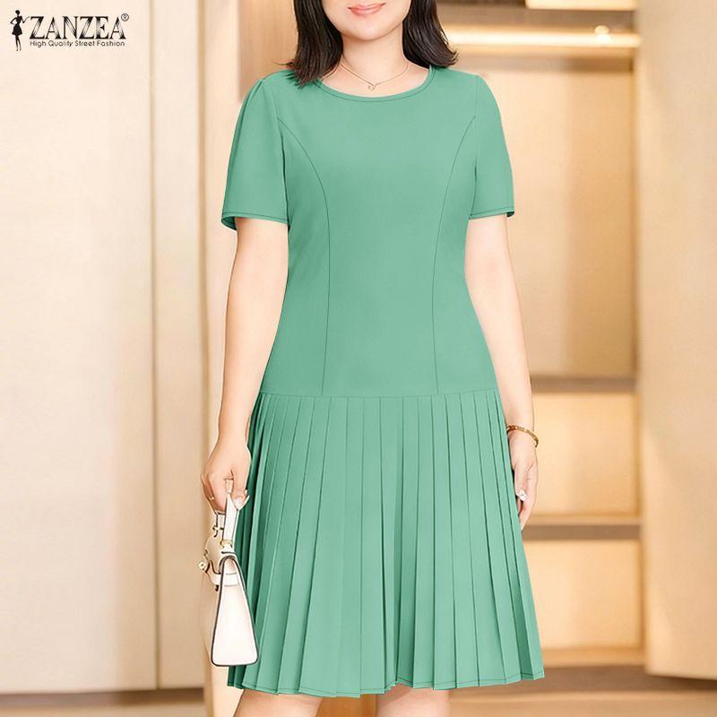 ZANZEA Lässiges Sommerkleid mit Rundhalsausschnitt und kurzen Ärmeln für Damen