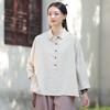 Johnature Women Vintage Shirts Tops Turn-down Collar Solid Color Blouses Autumn Button Soft Shirts