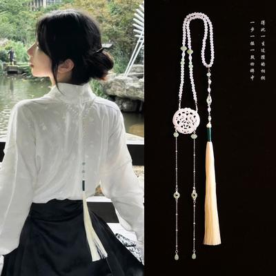Chinesischer Stil Pferd Gesicht Rock Halskette Perle Lange Quaste Halskette Hanfu Ruyi Anhänger Frauen