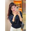 Schalriemen Dunkelblauer Kragen Unterziehoberteil Damen Herbst Temperament Dünner Strickpullover Design-Sinn Vielseitig Langarm