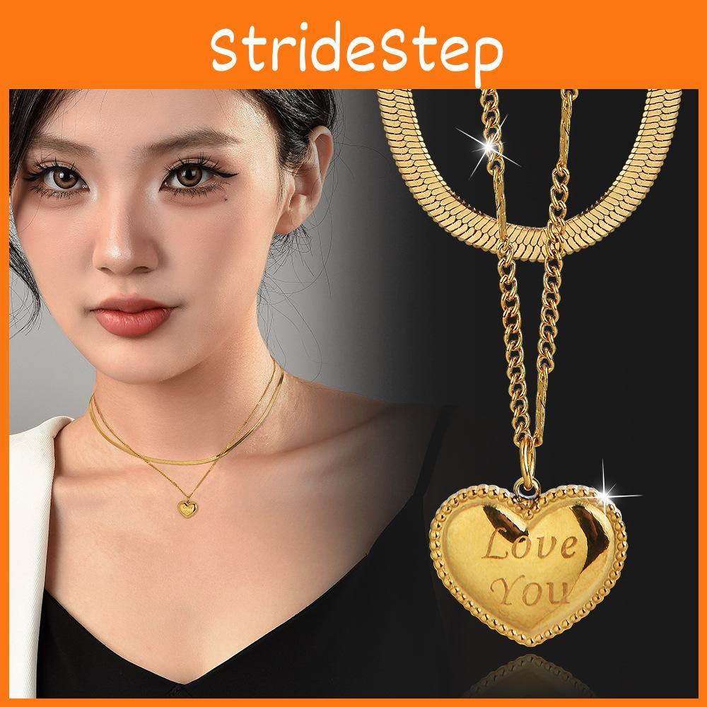 Modische zweilagige herzförmige Halskette aus Titanstahl für Damen in glänzendem Gold und Silber