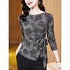 Temperament Einreihiger Kragen Bedrucktes Netzoberteil Damen Langarm Unterhemd Herbst Neue Mode Heißes Diamantspitzenhemd