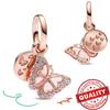 Funkelnde Kupferanhänger Roségold Schneeflocke Herz Geburtssteinperle Für Damen Halskette DIY Armband Geschenk Schmuck