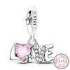 Copper Charms Pink Cat Dog Butterfly Dangle Turtle Paw Beads Fit Original Necklace Bracelet Pendants For Women Jewelry Gift