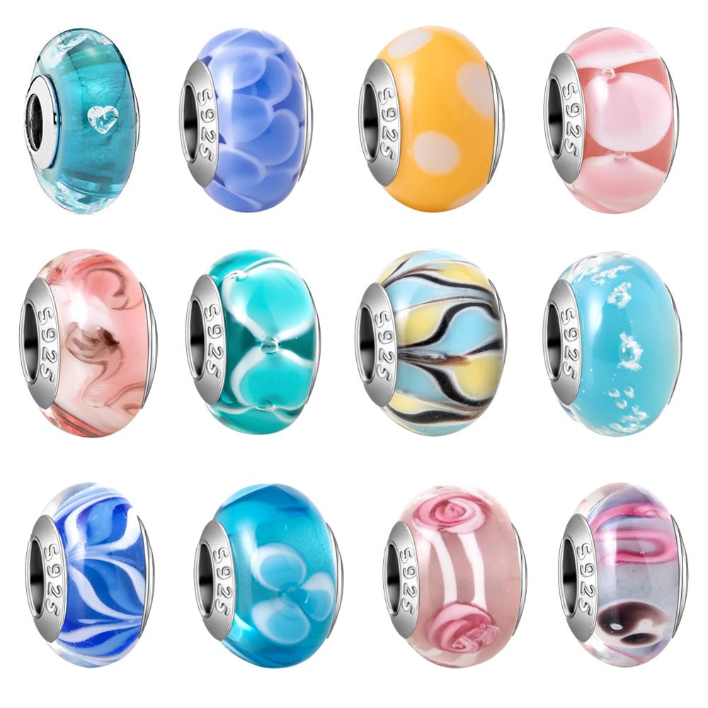 Murano Glas Serie Kupfer Mehrfarbig Rose & Blüten Grafik Anhänger Passt an Armband Damen Feiner Schmuck Zubehör