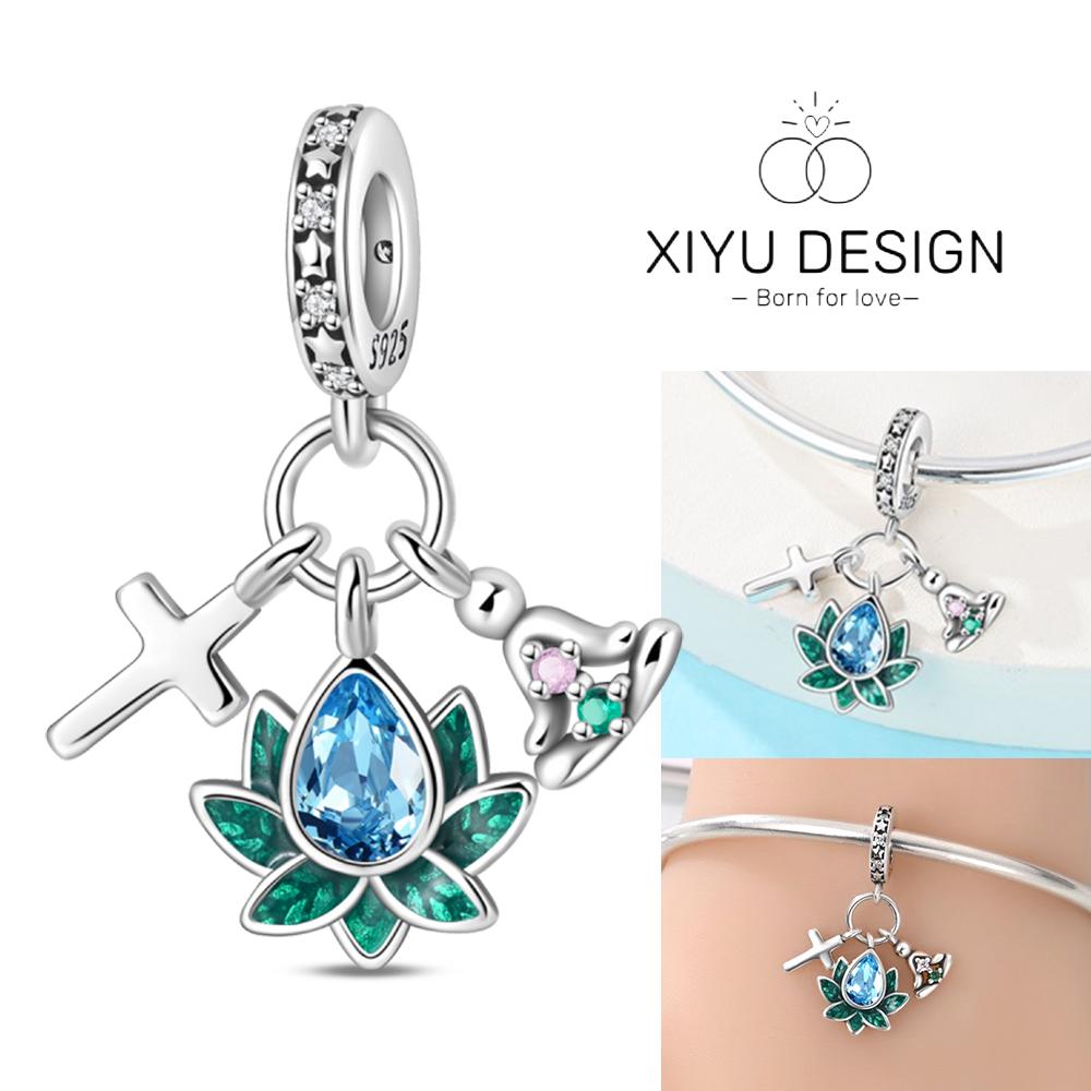Copper Sparkling Zircon Lotus Pendant Beads Charms Fit For The Brand'S Diy Bracelet Women Jewelry Girlfriend Gifts
