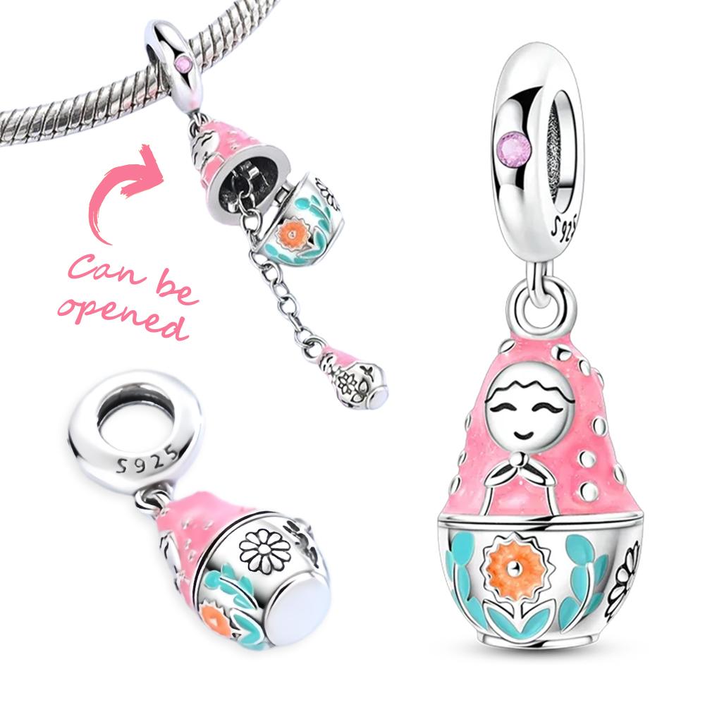 Copper Cute Pink Russian Nesting Doll Can Be Opened And Closed Charms Pendant Fit Diy Bracelet Women Jewelry Gifts