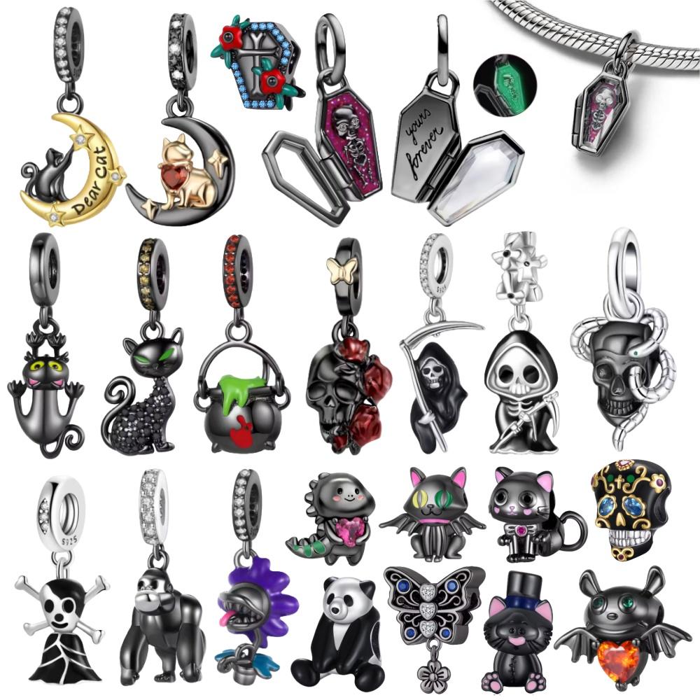 Halloween Kupfer Leuchtend Schwarzes Skelett Sarg Anhänger Perlen Passend für Charms Armband Zur Schmuckherstellung Geschenke für Frauen
