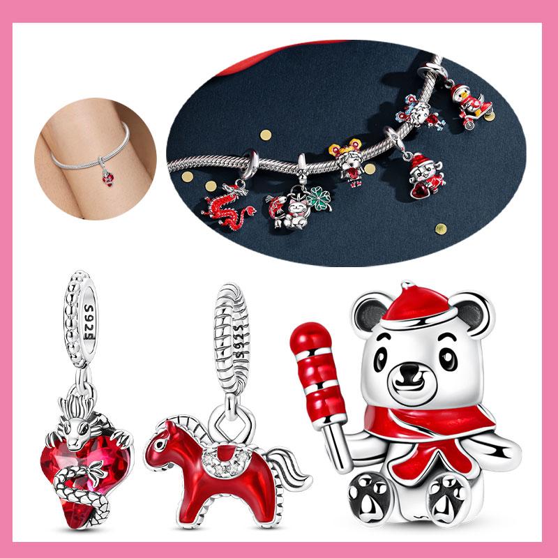 Kupferanhänger Neujahrsserie Rote kandierte Hagebutten Bär Herz Perlen Anhänger Passend für Originalarmband DIY Schmuck für Frauen