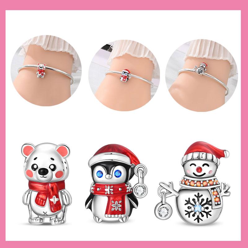 Copper Charmswinter Warm Bear, Penguin, Elk, Snowman Beads Pendant Fit Original Bracelet Diy Jewelry For Women