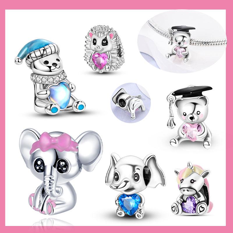 Copper Pink Bow Elephant Bear Hug Heart Animal Charm Beads Fit For Original Bracelet Exquisite Diy Birthday Jewelry