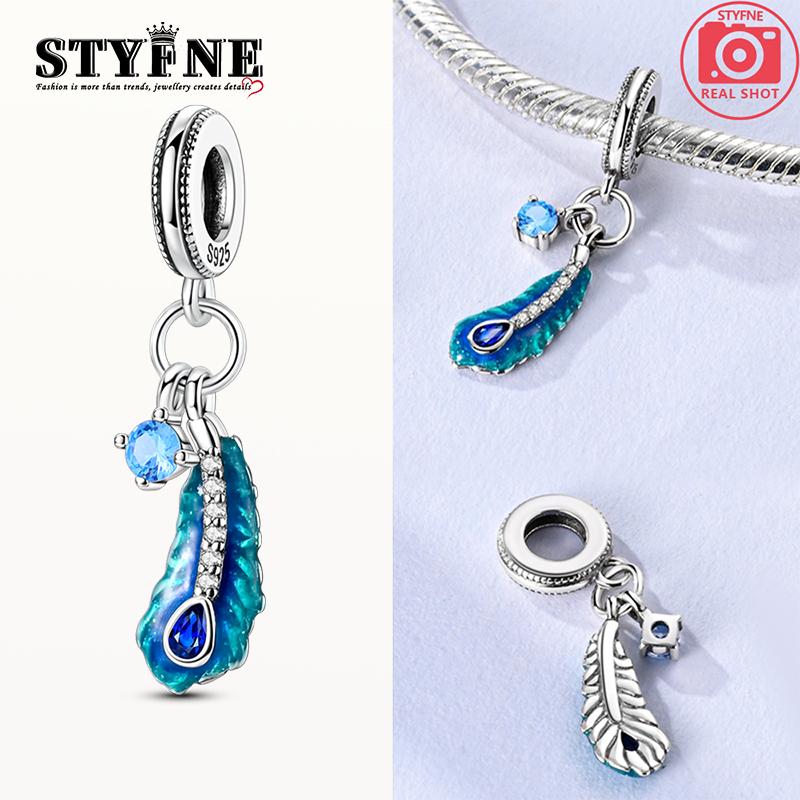 Charms Copper Dreamy Blue-Green Zircon Feather Pendants Fit Charms Plata Original Bracelet Beads Women Jewellery Making