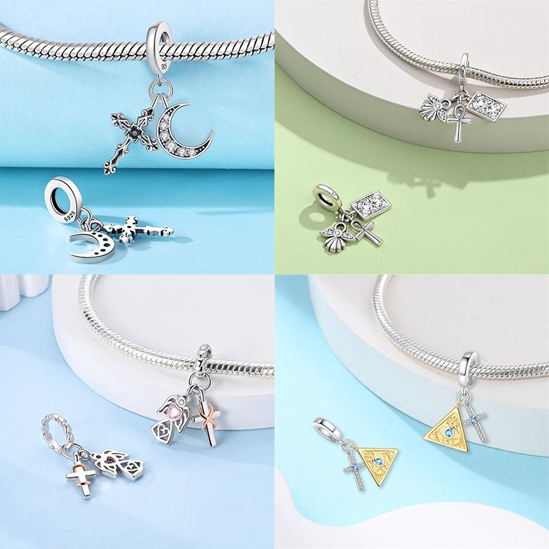 Charms Shiny Zircon Bible Cross Moon Prayer Hand Beads Copper Pendant Diy Women Jewelry Fit Original Bracelet Necklace Gift