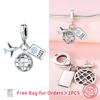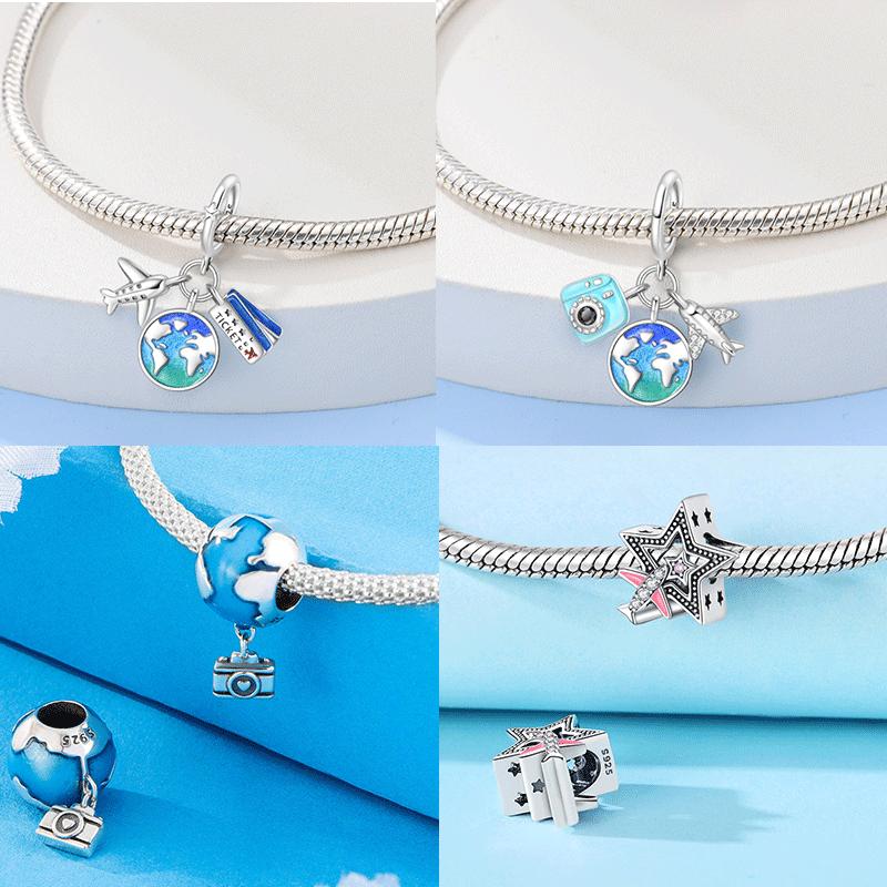 Original Copper Charms Earth Plane Ticket Suitcase Camera Beads Pendant Fit Bracelet Diy Fine Women Jewelry Gift