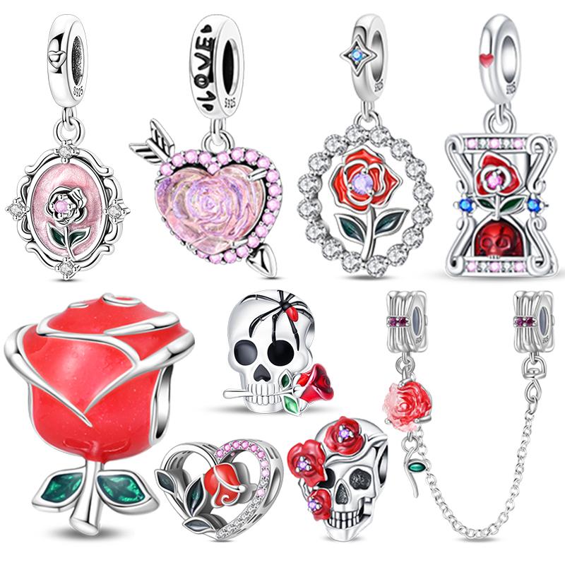 Copper Rose Pendant Charms Jewellery Fit Original Bracelet Necklace For Women Diy Gift