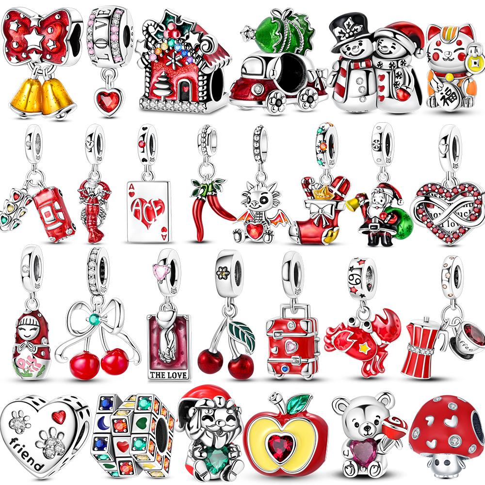 Copper Red Cherry Chili Santa Claus Dangle Charms Beads Fit Original Bracelet Diy Fine Jewelry Gifts Party