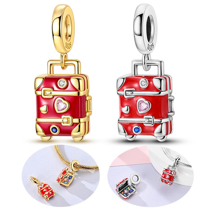 Copper Openable Luggage Pendant Charms Jewellery Fit Original Bracelet Necklace For Women Diy Gift