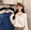 Kragen lockerer Strickpullover Damen Frühling Neu Enganliegend Reines Langarm Unterziehoberteil