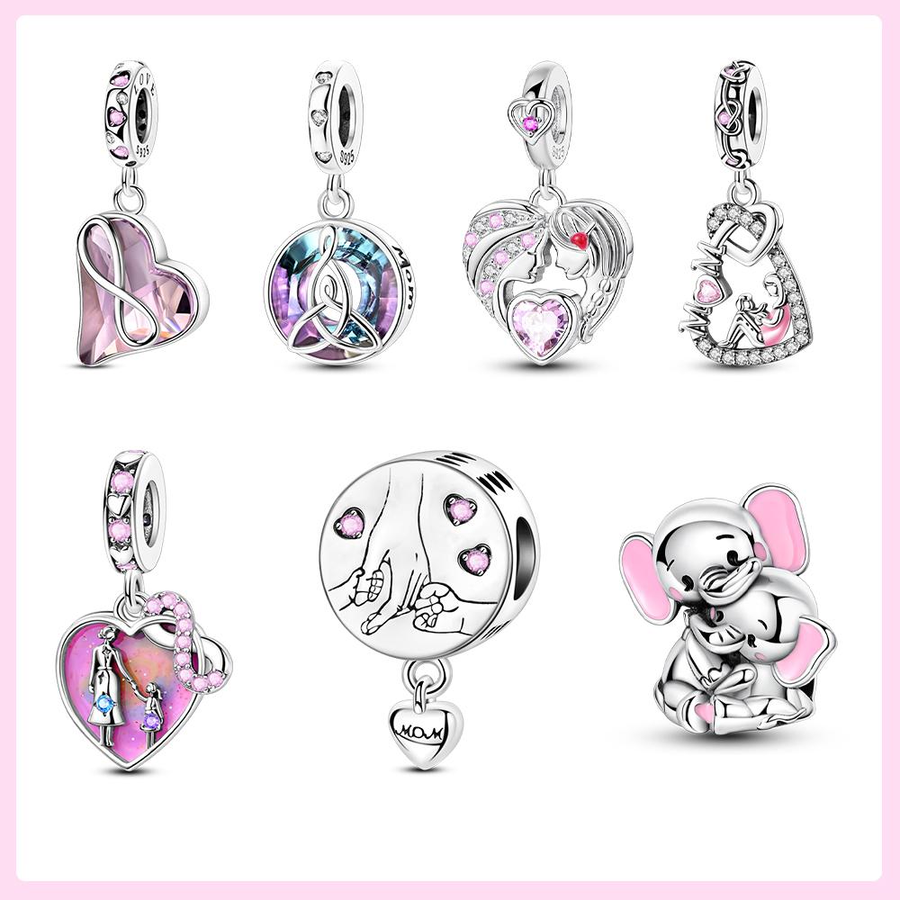 Kupferanhänger Liebe Mutter Glückliche Familie Herzperlen Anhänger Passen Original Armband DIY Schmuck Geschenk für Frau
