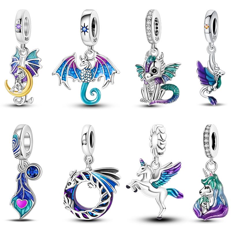 Magische Drachenanhänger Serie Kupfer Lila Flügel Charms Perlen Passend für Pandach Original Armbänder Für Frauen Mann DIY Schmuck