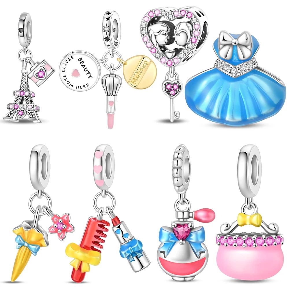Blue Dress With Heart Tower Yellow Umbrella Comb Pendant Original Copper Beads Fit Bracelet Jewelry Diy Women Accessory Gift