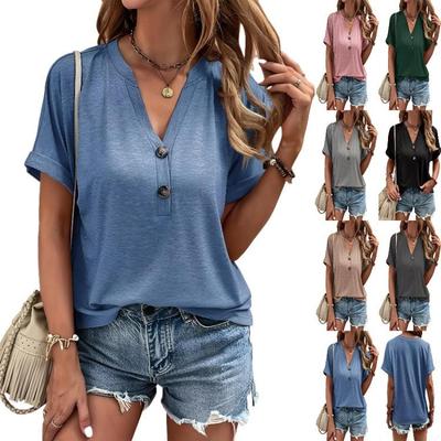 Women Fashion Short Sleeves Summer Tops Solid Colors Twist Button European American Style