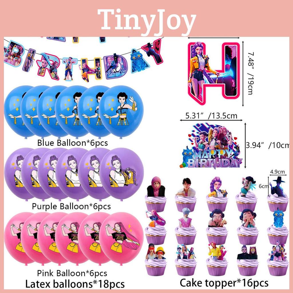 Kpop Dämonenjäger Geburtstagsfeier Banner Dekorationsset mit Ballons und Hintergrund für Anime-Fans