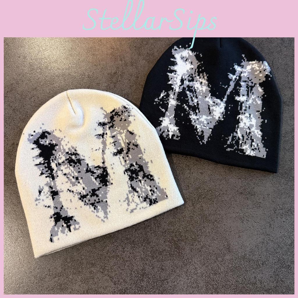 M Letter Knitted Beanie Hat For Women Warm Winter Fashion Accessory