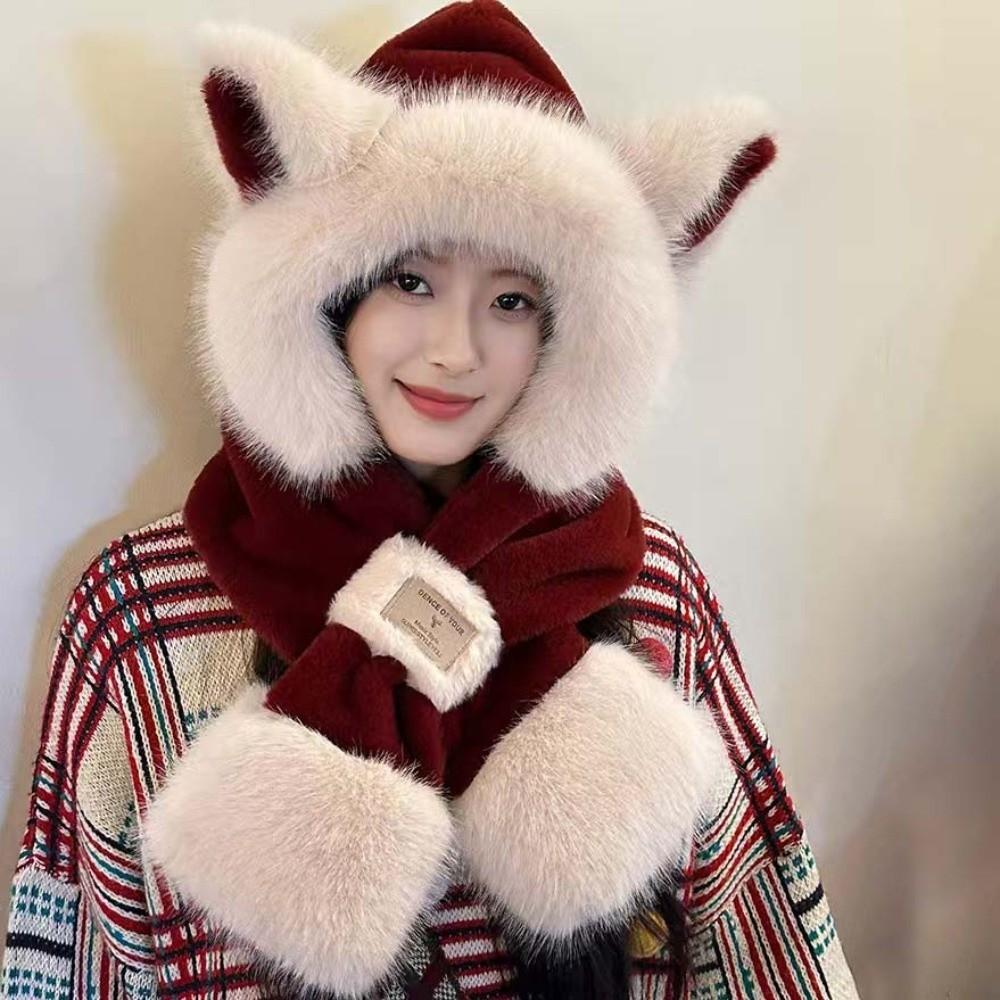 Cartoon Winter Plush Hat 2 IN 1 Ear Protection Cap Skiing Animal Ear Scarf Hat Outdoor