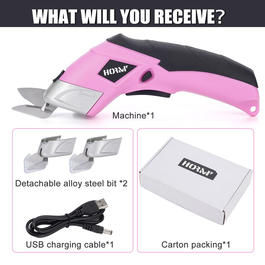 Electric Scissors USB Rechargeable 2000mAh Pink 11000 RPM with 2 Alloy Steel Blades for Fabric Leather Cardboard
