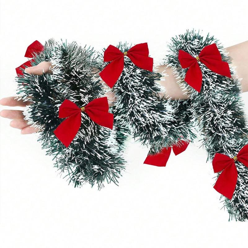 2M Weihnachts-Lametta-Bänder Grün Zuckerstangenband Girlande Weihnachtsbaum Hängeanhänger Bänder Kranzschmuck Party Heimdekoration