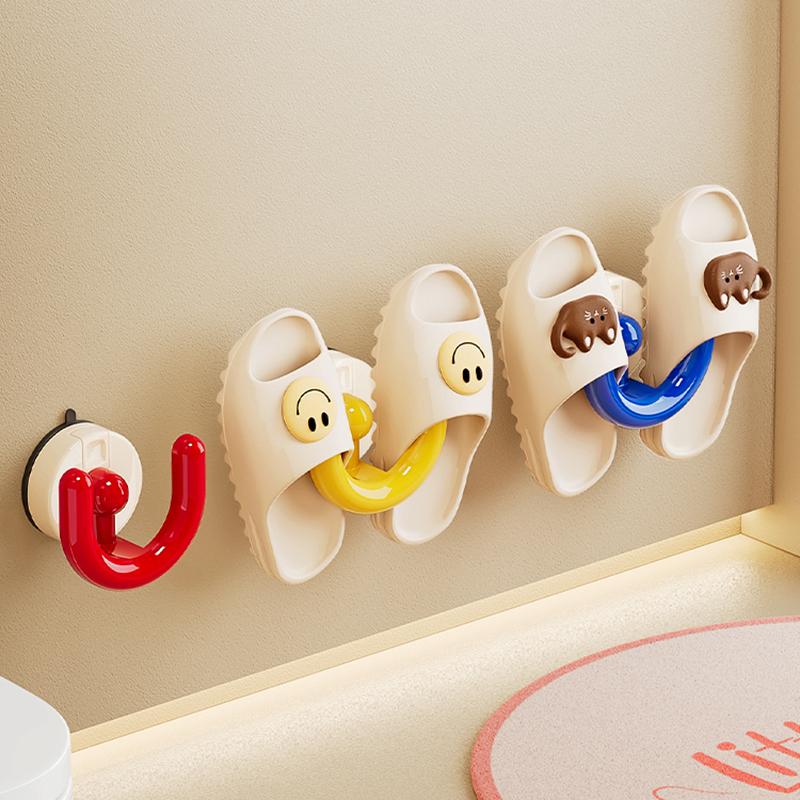 Saug-Schuhregal ohne Bohren - Wandmontierter Badezimmer-Organizer für Hausschuhe, Abnehmbare Trockenaufbewahrung Saughaken
