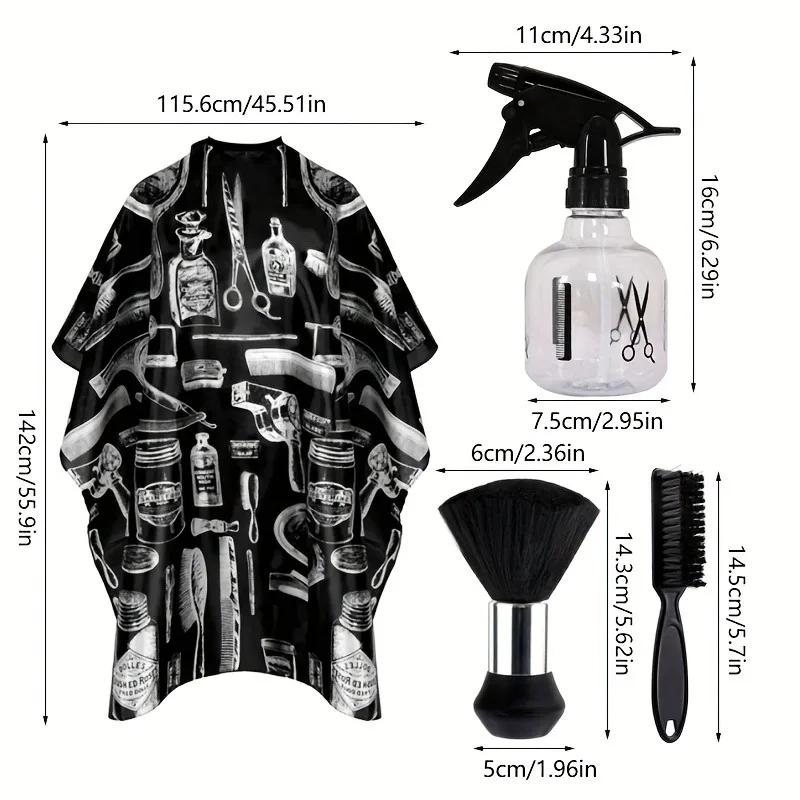 3pcs Professional Haircut Set Barber Cape Neck Duster Brush Polyester Apron with Spray Bottle Haircut Styling Accessories