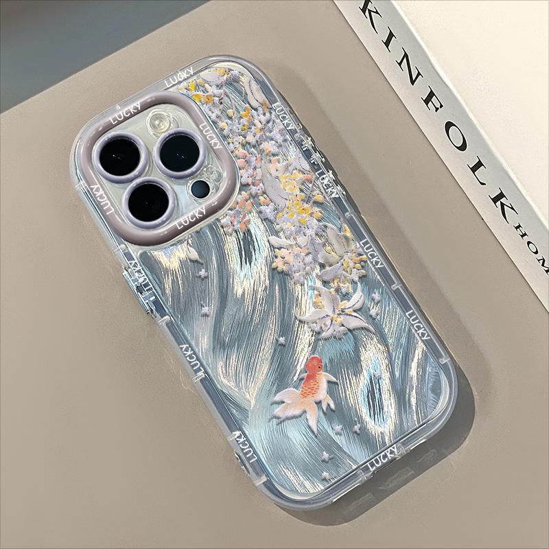 Kreative personalisierte Goldfische für Apple 16promax Handyhülle für IPhone15plus Federcreme 14/13