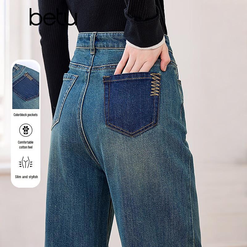 Women's High-Waist Washed Wide-Leg Denim Jeans