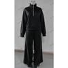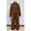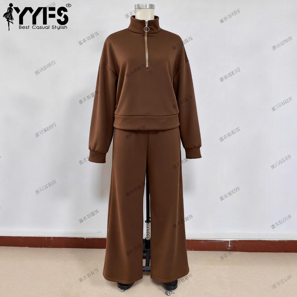 YYFS Damenmode, lässig, Frühling und Herbst, einfarbig, langärmelig, POLO-Ausschnitt, Hose, Hosenanzüge