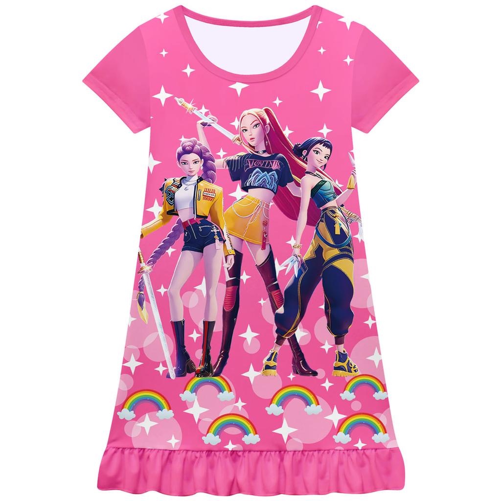 Mädchen Rüschenkantenkleid Cosplay Hexenjagd Gruppe Kleid Kurzärmlig Modisch Niedlich Bunt Bedrucktes Muster Bequem Weich Kinderkleid