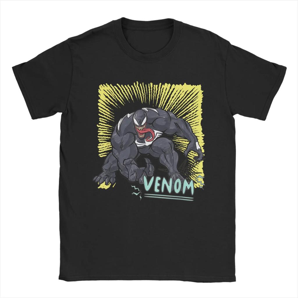 Genuine Authorized Venom Graphic Pen Colorful Vintage Print T-Shirt Men's Short Sleeve Relaxed TopLoose Plus Size Top