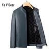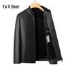 Yalu Men's Slim-Fit Stand-Collar Fleece-Lined Leather Jacket