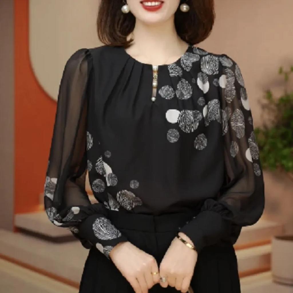Damen Sommer Übergröße Dame Pailletten Spitze Knopf O-Ausschnitt Langarm Y2K Oberteile