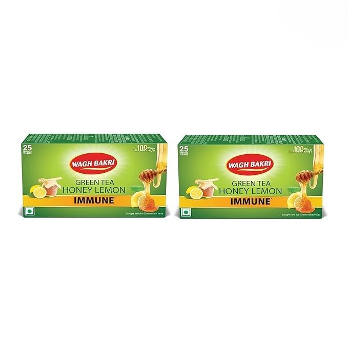 Wagh Bakri Green Tea Honey Lemon Refreshing Wellness Blend With Natural Flavour 25 Bags Per Box Pack Of 2