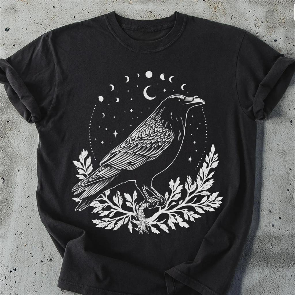 Raben Mondphasen Comfort Colors T-Shirt: Gothic Celestial T-Shirt Grafik T-Shirts Retro Streetwear Kurzärmeliges Herren T-Shirt