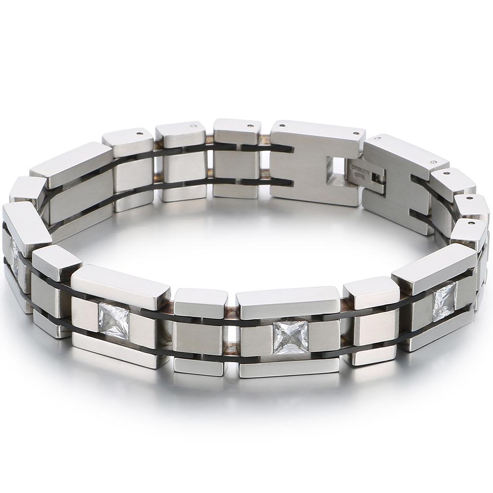 Edelstahl Herren Kettenarmband für Mann Modern Sein Geburtstag Weihnachtsgeschenk Schmuck mit Luxus Zirkonia