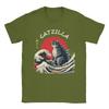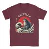 Lustiges Catzilla Katze Japanische Kunst T-Shirt für Männer Lässig Reine Baumwolle T-Shirt Rundhals Kurzarm T-Shirts Klassische Kleidung
