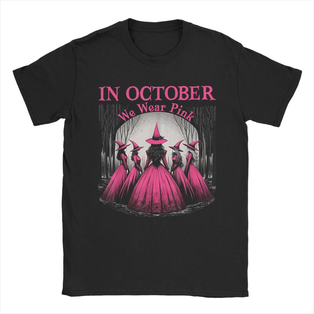 Streetwear T-Shirt Retro im Oktober tragen wir Pink Hexe Brustkrebsbewusstsein Baumwoll-T-Shirts Trendy Y Kurzarm-Tops