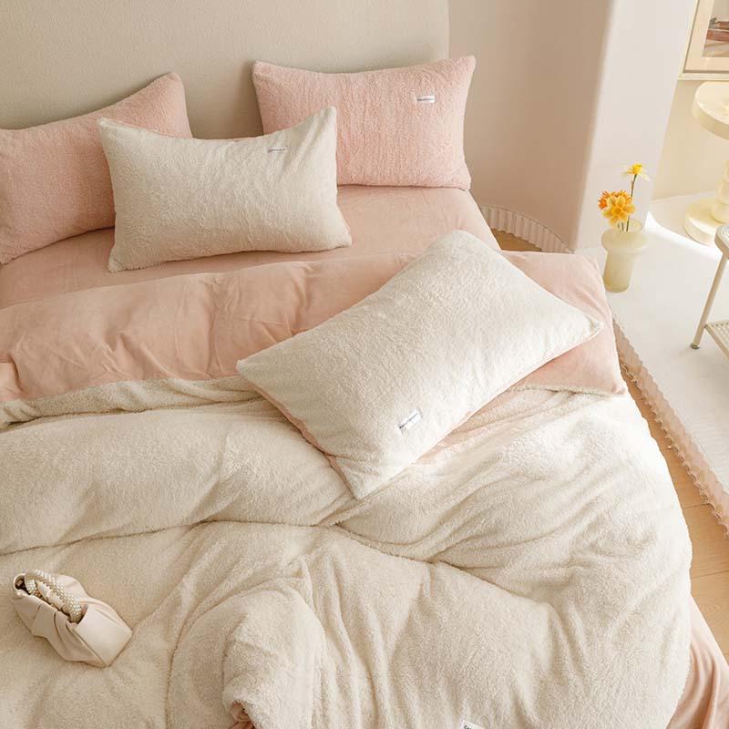 Thickened Milk Fleece Four-Piece Set, Solid Color Coral Fleece Bed Sheet Quilt Cover, Flannel Bed Three-Piece Set