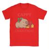 Cappy Christmas Capybara with Present Men's T Shirts Humorous Tees Short Sleeve Crew Neck T-Shirt Pure Cotton Gift Idea Tops