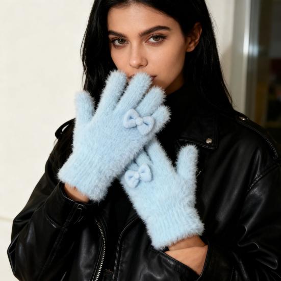Yousheng Damen Fuzzy Thermohandschuhe Flauschige Dicke Vollfingerhandschuhe mit Schleifen Winter Plüschhandschuhe für Kaltes Wetter Sport Fahren Weihnachtsgeschenke
