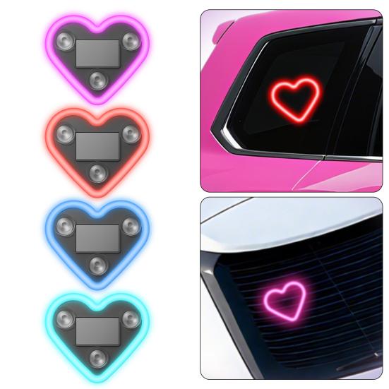 Yousheng Solar Herzform Neonlicht für Autofenster Wasserdichte LED Stimmungsleuchte mit Saugnapf Romantische Atmosphäre Deko