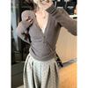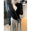 Supply collar bottoming shirt women's spring, autumn and winter button pit strip knitted top simple inner sweater